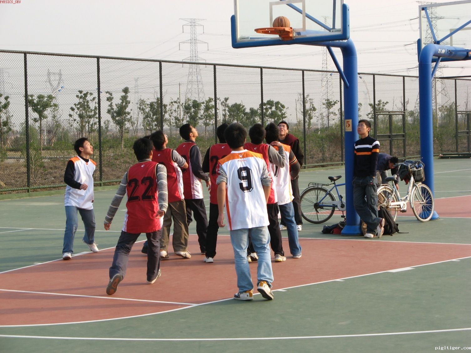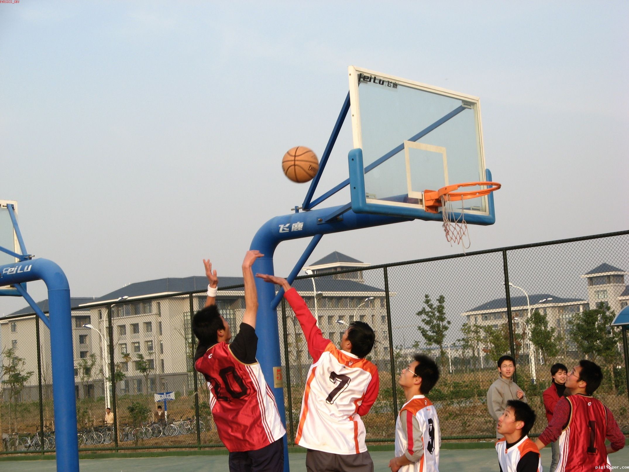 本次友谊赛学生会成员分为两组,分别由体育部和组织部领导,其他部门分属两个组。友谊赛中场休息时有女生的罚篮大比拼。最终以组织部以40:21取得胜利。
