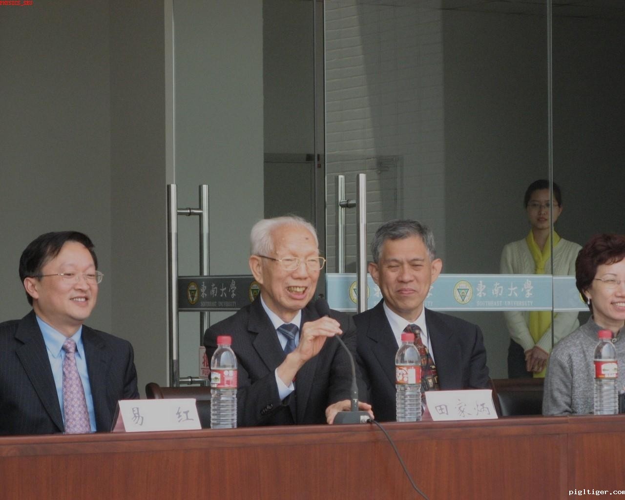 物理系同学欢迎田先生一行: