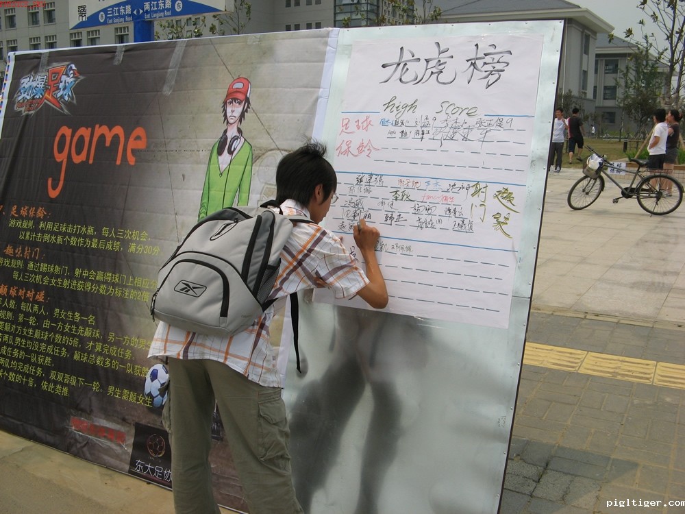 “心有灵犀”活动要两个同学共同参与,在这个活动中,参与的同学不仅获得了快乐,而且加深了彼此的认识及友谊。“趣味射门”让没有真正在球场上挥洒激情的同学也有机会来体验进球所带来的快乐。