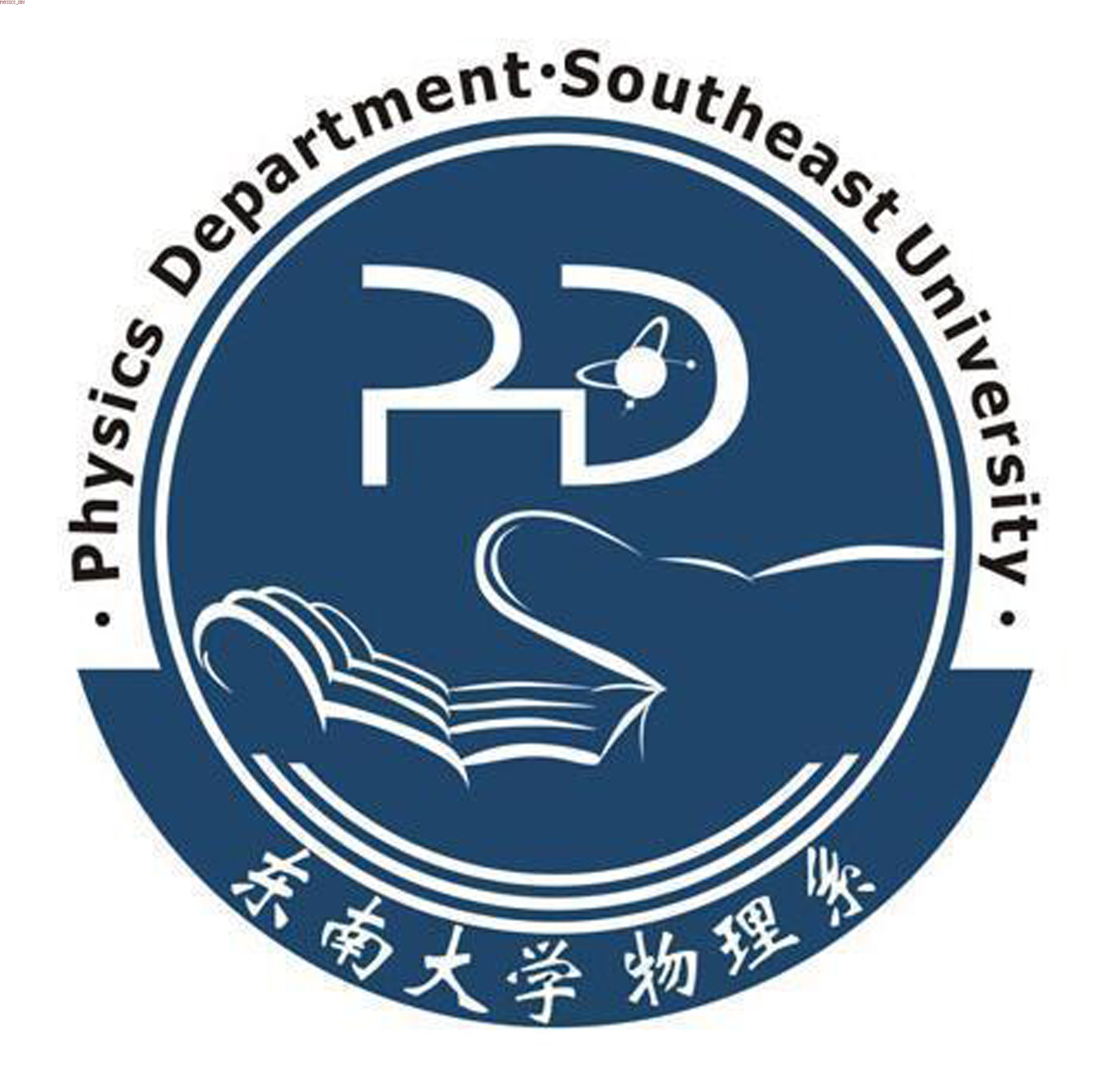 内部图形部分。此部分作为设计主体,上半部为PD字母组合,象征physics department,中心镶嵌一个原子形象,象征物理系的专业领域。下半部采用一托起状手的形象,象征对知识的掌握与专精。
