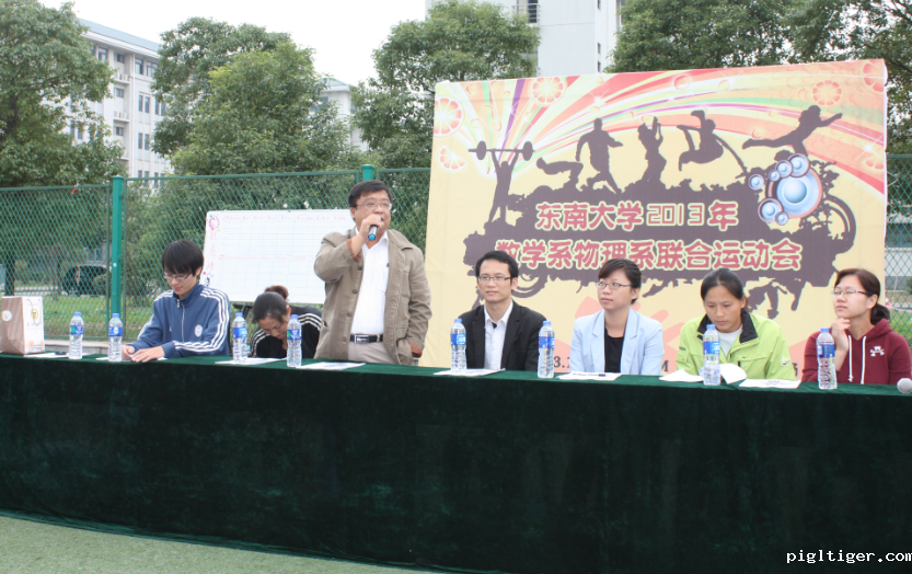 2013年10月19日,2013年数学系物理系联合运动会在必威betway官方入口九龙湖校区梅园体育场正式举行。下午12点50分,物理系和数学系的运动员和同学们在梅园操场上集合完毕,运动会开幕式开始。参加运动会开幕式的嘉宾有:物理系党委书记王勇刚、物理系党委副书记潘勇涛、数学系党委副书记曹海燕、两系团委书记、辅导员等领导和老师。
