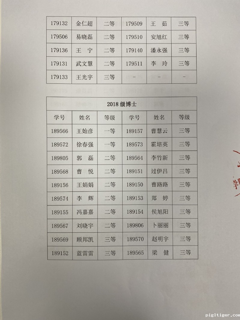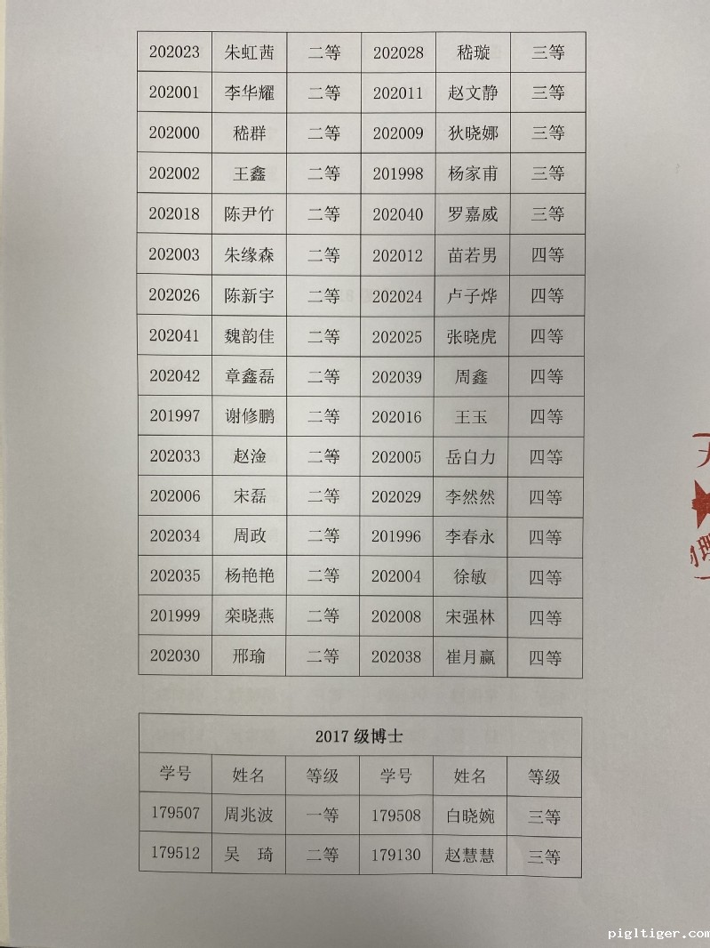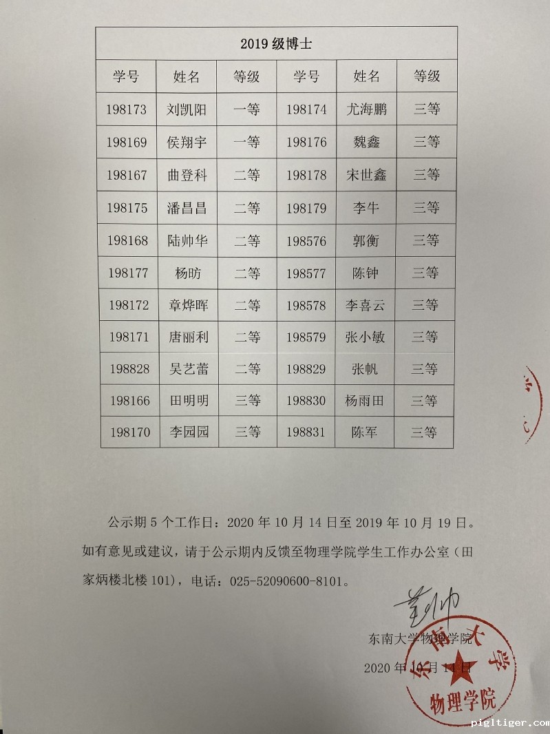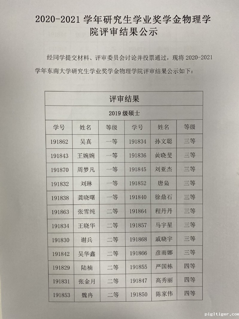 2020-2021学年研究生学业奖学金物理学院评审结果公示
