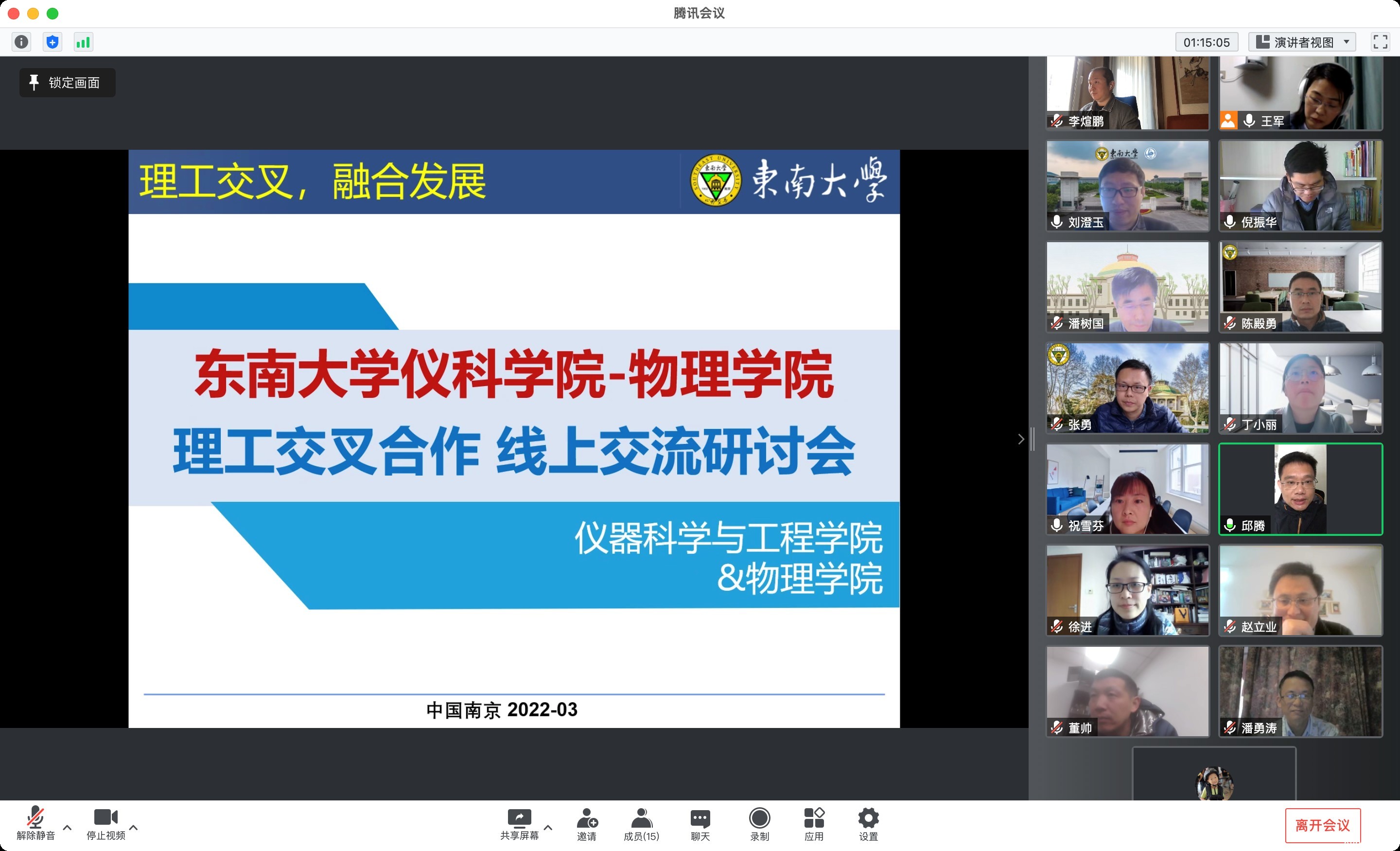 2022年3月22日,我院与仪科学院党政领导班子共同举办了理工交叉合作线上交流研讨会,在充分了解双方学科特点、人才培养优势等各项工作的基础上,深入探讨了理工交叉合作的内涵及共同发展的前景。