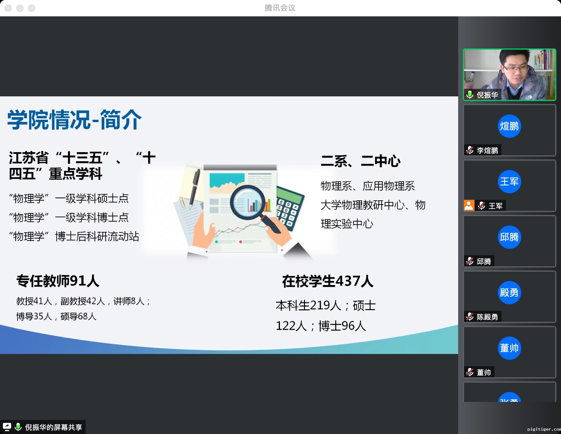 我院倪振华院长就物理学院发展的相关情况进行了介绍。他介绍了近年来学院师资与人才倍增,形成了几个具有优势和特色的研究方向,同时也客观指出了物理学院目前发展遇到的诸如缺乏大团队、大平台、大项目等问题,表达了与仪科院进行深度合作,实现人才培养、项目申报、国际交流合作等方面协同发展的强烈意愿。