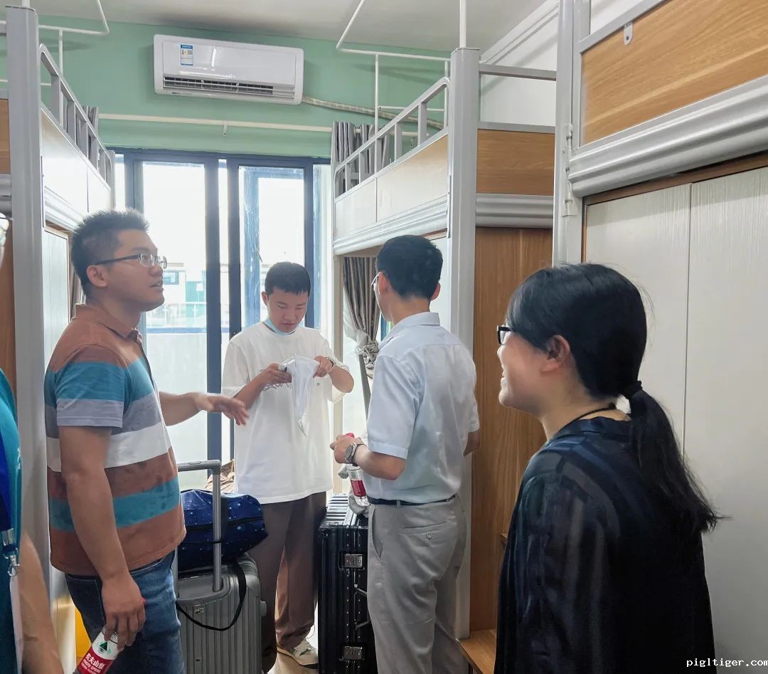 随后,学院领导们走访了新生宿舍,对新生的住宿,学习情况表达了关心。老师们的亲切问候,让同学们感到十分暖心。