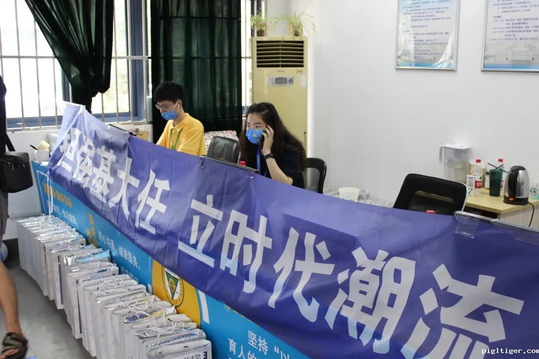 迎新期间,物理学院党委书记潘勇涛,院长倪振华,党委副书记徐进也来到了桃园9-10舍的迎新接待点。书记院长为前来报到的新生分发迎新物资,并和同学们亲切交流。他们幽默风趣的谈吐、平易近人的性格立刻拉近了与志愿者们、新生们的距离,大家也纷纷与书记院长们交谈起来。
