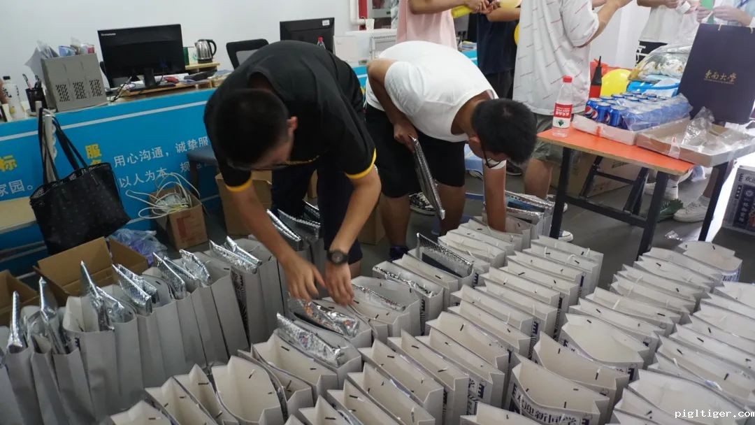 志愿者正将学院为新生们精心准备的礼物装袋,每个礼物都带有新生的名字,每份礼物都代表了学院对新生独一无二闪光点的珍视。