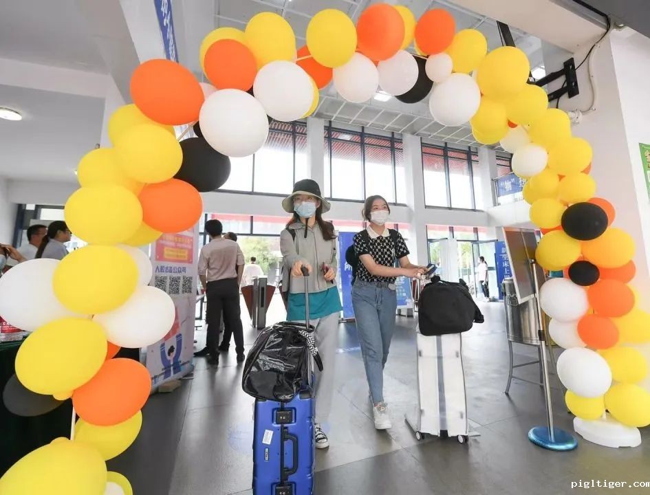 第一位来到学校的费振轩同学,走过气球门,在志愿者的引导下,来到了我们的迎新办公室,顺利快速地办理了报到手续,拿到了学院精心准备的入学礼包。