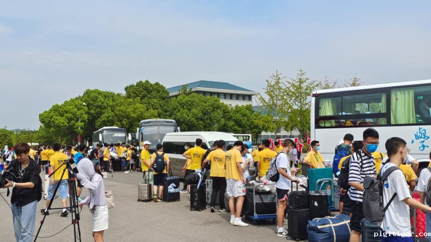 一大早,我们的志愿者就活跃在校园的各处,流动接驳车也早早在校门口等着大家的到来,在志愿者的帮助下,将各位新生和行李送到宿舍楼下。