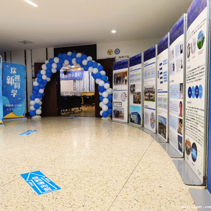 迎新前一天,学院组织学生干部一起为大家分装大礼包、布置场地、挂横幅、吹气球、搭建拱桥...这是专属于我们物理人的专属物院蓝!
