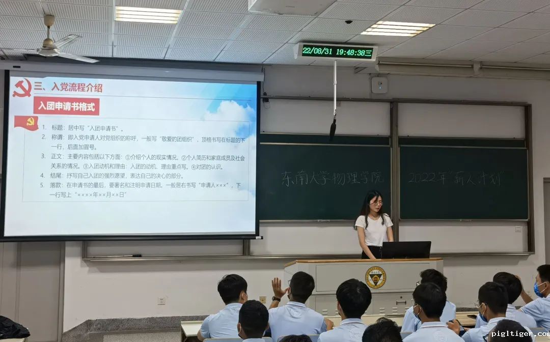 物理学院积极响应党委学工部号召,于2022年8月31日晚在教四104教室隆重召开2022级本科生“薪火计划”——优秀学生党员上团课活动。本次“薪火计划”活动的两位主讲人是:物理学院本科生党支部书记于少薄、物理学院硕士研究生党支部书记郭蓉。