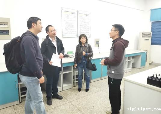 陈乾主任向来访老师介绍物理教学实验室