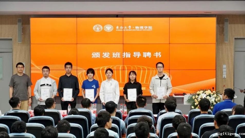 为了更好地培养高层次创新人才,学院为每个本科生班级都选聘了青年教师担任班主任,指导同学们在大学生活中充实自我、完善自我。对强基班和拔尖班更是特别设立了“双班主任”,由学院领导和青年教师共同担任。倪振华院长为强基班班主任董帅、陈太师,拔尖班班主任邱腾、张乃波,物理学专业班主任李泽军、应用物理专业班主任汤启云、顾毓琇理科试验班班主任李升颁发聘书。