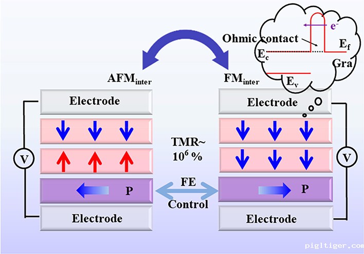 此外,他们还设计了两种多铁隧道结器件,即石墨烯/CrI3-AgBiPSe6/石墨烯和石墨烯/Cr2Ge2Te6-In2Se3/石墨烯。在这些器件中,石墨烯电极和异质结之间实现了良好的界面欧姆接触,导致了高达9.3×106 %的隧道磁阻。这项研究不仅提出了一种可行的策略,并确定了一种有希望实现全电控多铁隧道结的候选者,而且为设计其他先进的自旋电子器件提供了重要的见解。