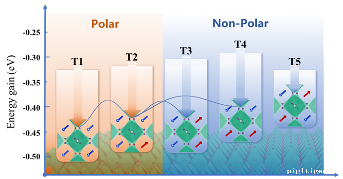 图1. NH4PbI3四方相结构的铁电极化序以及竞争构型(铁电、反铁电构型)的相对能量