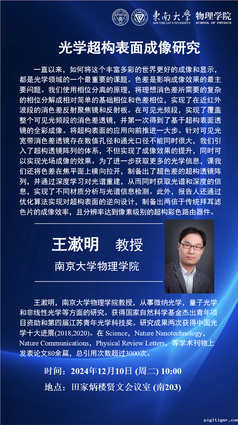 12月10日周二10:00格物论坛|光学超构表面成像研究(邀请人:董正高)