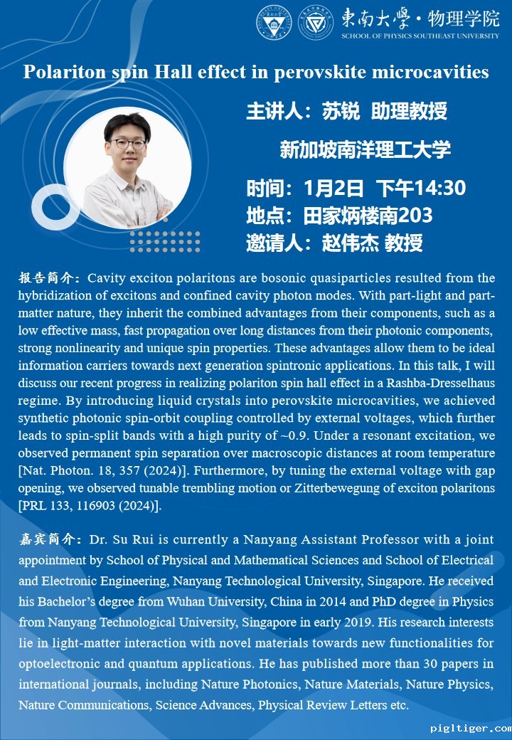 2025年1月2日14:30学术报告|Polarition spin Hall effect in perovskite microcavities