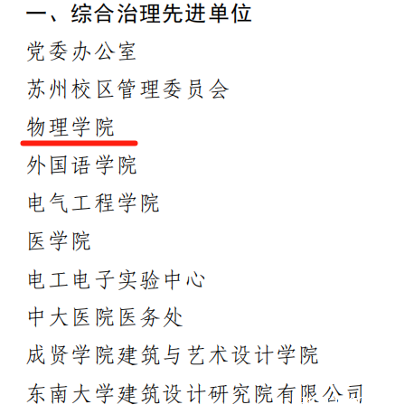 根据《关于表彰2024 年度安全保卫综合治理责任制先进单位和先进个人的决定》(东大委〔2025〕1号),学校组织开展了 2024 年度安全保卫综合治理责任制考评工作。经各单位自查自评、各片区考评小组综合评价、评审复核工作组投票评选,报学校治安综合治理委员会审核同意,我院被评为必威betway官方入口2024年度综合治理先进单位(全校共10个)。学院办公室主任司丽芳老师获评安全保卫先进个人。