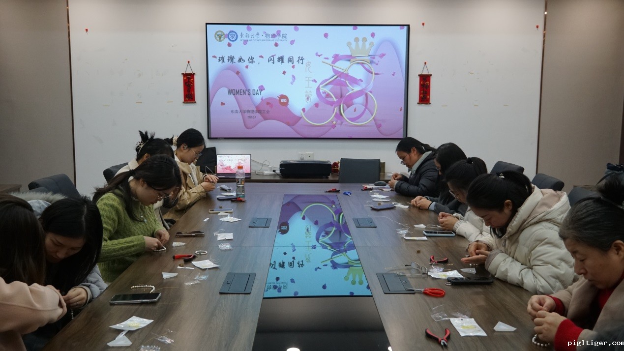 为庆祝第115个“三八”国际劳动妇女节,丰富女教职工精神文化生活,3月7日下午,物理学院工会特别策划“璀璨如你,闪耀同行”手链DIY活动,20位女教职工齐聚学院活动室,以指尖艺术传递节日祝福,以匠心巧思展现女性风采。