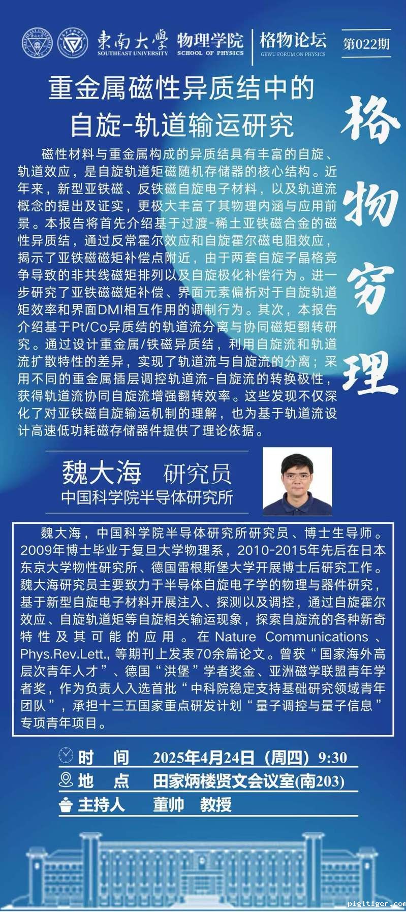 4月24日周四9:30格物论坛|重金属磁性异质结中的自旋-轨道输运研究