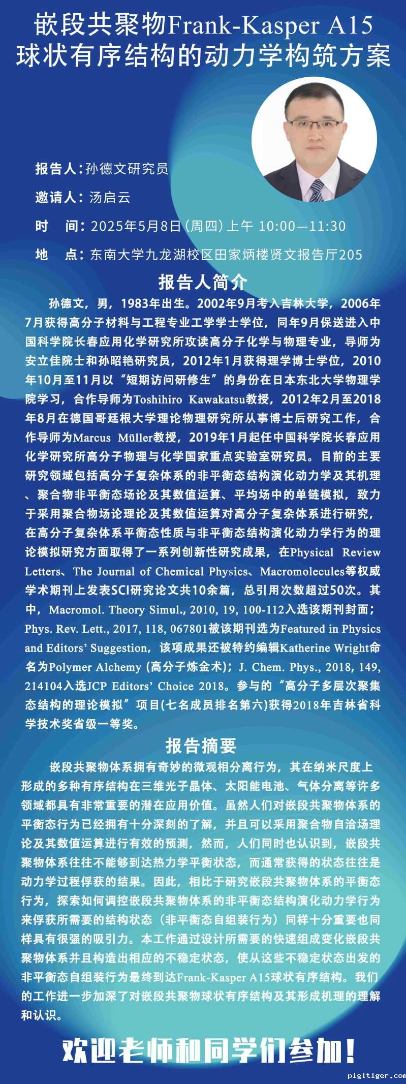 5月8日学术报告|嵌段共聚物Frank-Kasper A15球状有序结构的动力学构筑方案