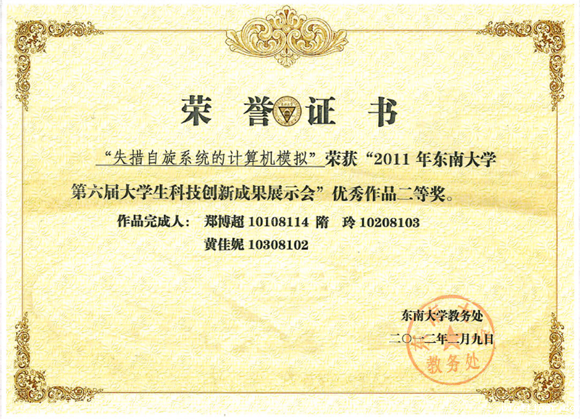 2012 | 2项 | 江苏省普通高校本专科优秀毕业设计二等奖1项 | |||