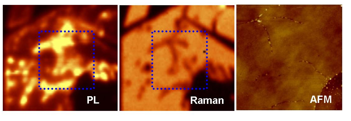 Abstract: We report on a strong photoluminescence (PL) enhancement of monolayer MoS2 through defect engineering and oxygen bonding. Micro- PL and Raman images clearly reveal that the PL enhancement occurs at cracks/defects formed during high temperature vacuum annealing. The PL enhancement at crack/defect sites could be as high as thousands of times after considering the laser spot size. The main reasons of such huge PL enhancement include: (1) the oxygen chemical adsorption induced heavy p doping and the conversion from trion to exciton; (2) the suppression of non-radiative recombination of excitons at defect sites as verified by low temperature PL measurements. First principle calculations reveal a strong binding energy of ~2.395 eV for oxygen molecule adsorbed on an S vacancy of MoS2. The chemical adsorbed oxygen also provides a much more effective charge transfer (0.997 electrons per O2) compared to physical adsorbed oxygen on ideal MoS2 surface. We also demonstrate that the defect engineering and oxygen bonding could be easily realized by oxygen plasma irradiation. X-ray photoelectron spectroscopy further confirms the formation of Mo-O bonding. Our results provide a new route for modulating the optical properties of two dimensional semiconductors. The strong and stable PL from defects sites of MoS2 may have promising applications in optoelectronic devices.