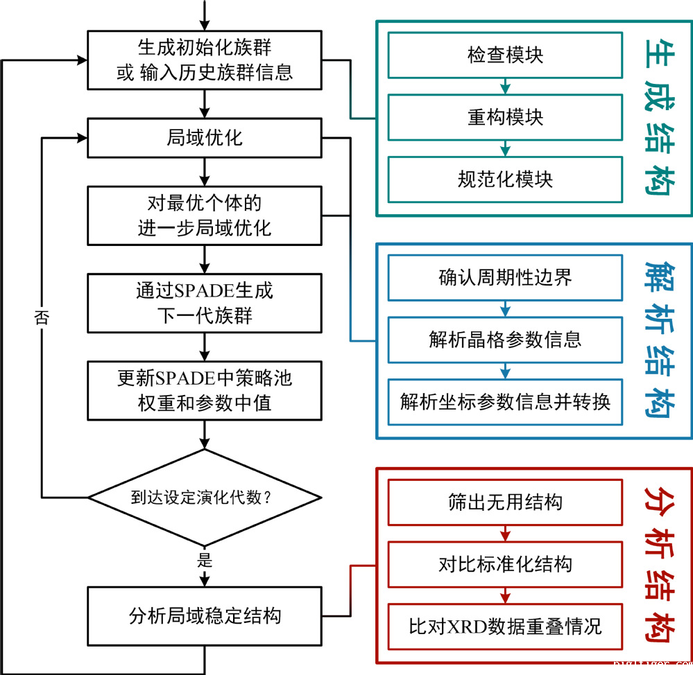 低维度晶体结构搜索软件(Structure Probe Adaptive Differential Evolution, SPADE),一种基于晶体结构搜索且针对于低对称性体系的自适应差分进化算法。该算法集成了灵活的框架用于晶体结构文件的生成与解析,且提供了灵活的接口用于复杂情况的模拟。适用于三维晶体结构、二维材料、晶界及负载团簇等多种微观结构的全局结构搜索。