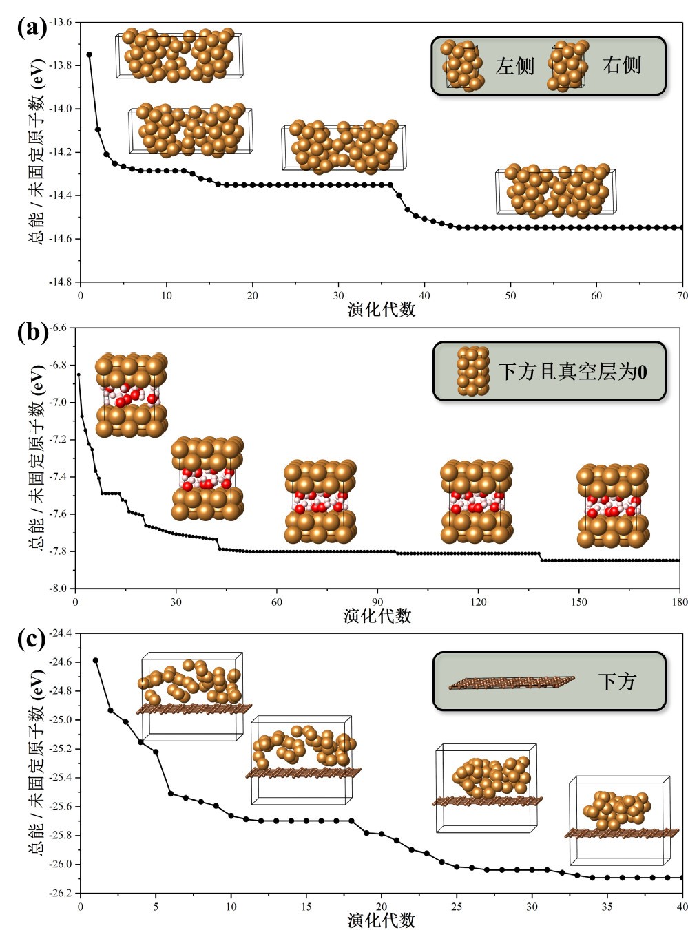 该程序具有以下几个方面的特性和优势:a) 没有对称性操作约束的结构搜索,实现了完整搜索空间的结构搜索;b) 动态策略池的策略实现了对多种算法变体权重及其参数值的自适应动态调节能力,提高了搜索效率;c) 标准化结构和XRD表征模拟分析,保证了对所有搜索所得结构的分析与分类;d) 对于低维材料基于图论引入“原子岛”的概念,以提高层状材料搜索效率;e) 程序提供了通用的模拟软件接口,有利于后续力场等其他模拟软件的对接。
