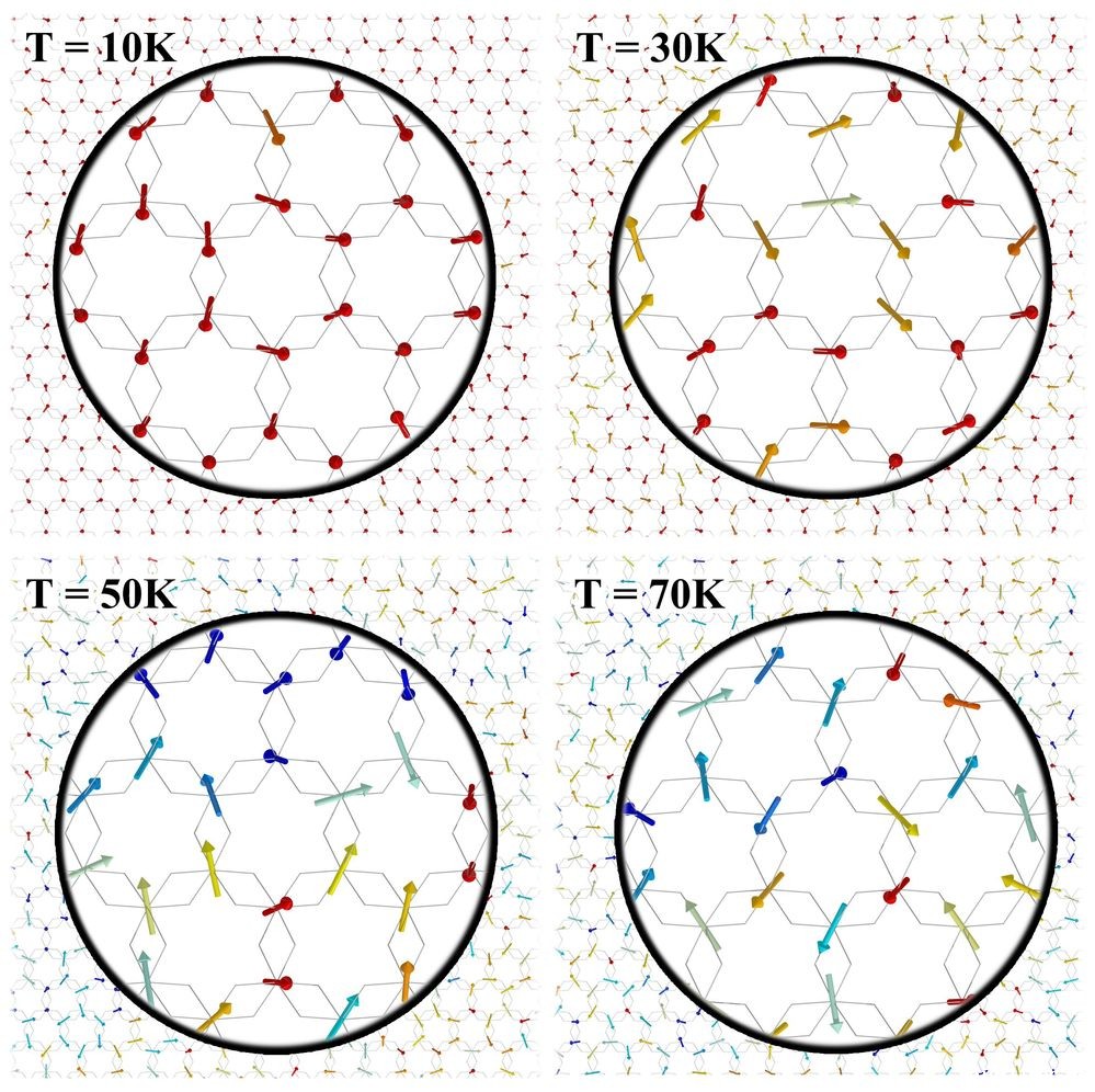 图2. 模拟单层CrI3体系的局部磁矩信息快照